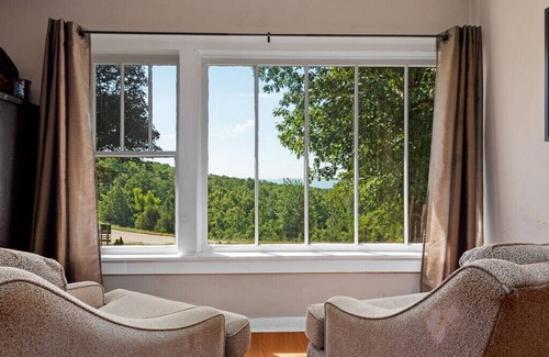 The Coffey Place is a spacious historic home that has been completely updated. Hardwood floors are featured in the great room as well as a stone fireplace on one end and a open dining space on the other end. There are windows all across the front of the house that face a very long range view of the mountains. The kitchen with granite countertops and stainless steel appliances features two eating spaces. The rooms are all on one floor The are four bedrooms one has a kingsize bed, bedroom two has a queen size bed and there are two additional bedrooms each with 2 twin beds. One bath is full with a shower and the other full bath has a soaking bath tub. There is a half bath off the great room. This is a rare set up for this area most cabins are on two levels. Wifi internet service included