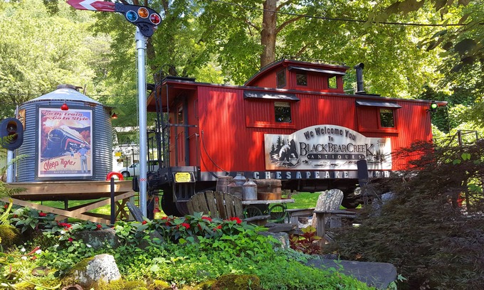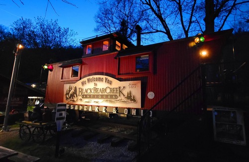 NEW VIDEO TOUR ADDED! For best quality, chick on Watch on YouTube. Even though listing details are provided, questions I've been asked. YES, the caboose has a fully functional, tricked out bathroom, in the silo adjacent to it (see photos and reviews). YES, the caboose has Air Conditioning & Heat in caboose and bathroom. YES, there is Hot Water in the bathroom. YES, there's an HD LCD television with Sound Bar, and with full DirectTV line-up of channels, along with Netflix and other streaming services. YES, high-speed (40mbs) WiFi is provided. In other business - No more than 2 adults, TWO NIGHT MINIMUM, no children, no pets, NO smoking, NON-smokers only please, and no discounts ever given. ---- Now the GOOD stuff: Located just one mile from fabulous Lake Burton, our 1929 vintage C&O caboose has undergone a top-to-bottom restoration and upgrade, with shades of the luxury Pullman cars of yesteryear. No detail was ignored to allow for a truly unique getaway experience. (Figure of speech. The caboose does not actually go anywhere) Though located adjacent to our also-historic general store-turned antique store, Black Bear Creek Antiques, you will have lots of privacy and space to call your own; private entrance, dedicated parking, waterfall and mountain spring creek just 20 feet away, and easy access to great restaurants (Five of the Top 10 Chefs in GA have restaurants within 10 miles of here) and shopping in nearby Clayton, and all the natural wonders the area has to offer.