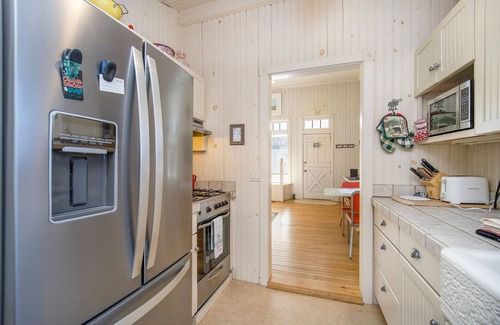 Located in a perfect location near the lake, local shops, and great restaurants in the village, this historic, 19th-century home - a true original in Walloon village - is ideal for a romantic getaway for two or a solo adventure. Inside, you'll find white shiplap walls and ceilings, sunlit spaces, and all the amenities you'll need for a relaxing time away. Prepare your favorite recipes in the compact, but well-equipped kitchen, dine at the table for two, and then settle into the front living area and stream your favorite TV channels. Out front, relax on the porch swing and watch the world go by, or head out back to dine on the deck.