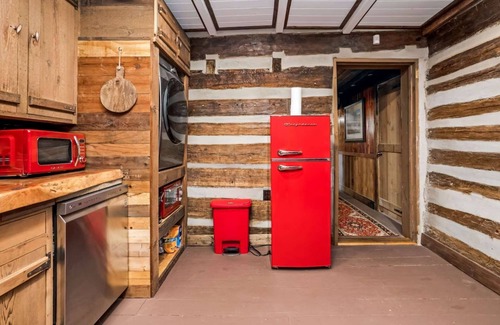 This Civil War era cabin was manually reassembled in the 1970s with its original, hand-hewn logs and 3-inch-thick poplar floor boards. The original structure was part of a 40-acre tract that became the site of the current Fred J. Page High School in nearby Franklin. The structure originally housed workers on the farmland. The then football coach had it transported to his farm and used it as a summer camp for the high school football team. It was popularly known as “Coach’s Farm” in the area for a long time. It has been updated to include modern amenities, including central heat and air, a kitchenette, high speed internet and TV. From one end, the stone patio overlooks the twin creeks as they merge at the footsteps of this cabin. The other end of the cabin overlooks the popular Arrington Vineyards, which features live music in the summer.