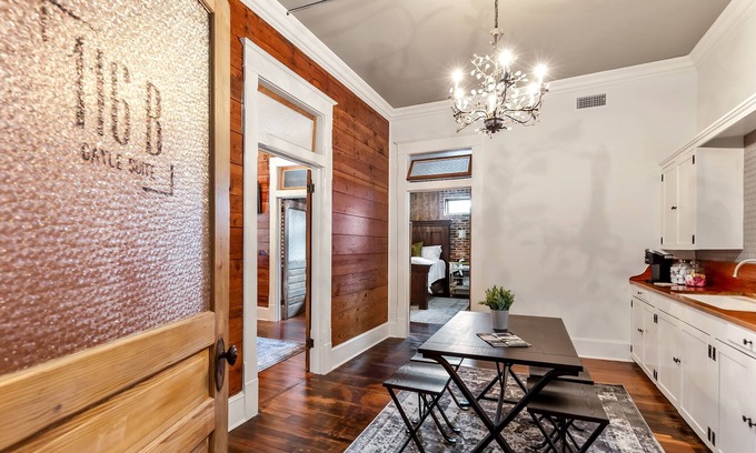 Newly renovated Historic downtown suite located above the music venue/southern skillet kitchen, The Dirty South situated 2 blocks from the Brazoria County court house.