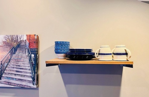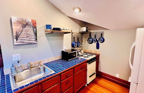 Welcome to the Charm of Churchill, a private getaway for 1 or 2 nestled in a historic Stillwater neighborhood. This cozy studio apartment is just a short walk from Stillwater's downtown Main Street, where you'll have easy access to all the shops, restaurants, coffee shops and attractions that make Stillwater a year-round beloved destination. The studio is situated alongside an 1892 Victorian home above a modern garage, with its own private entrance and keypad access for guests.