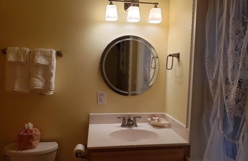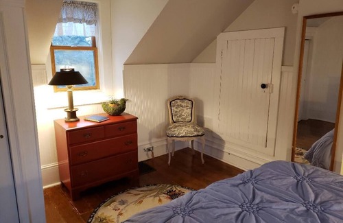 Built in 1862, this self-contained 1 bedroom, 1 bath unit attached to the main home is situated on 1.5 acres. Brimming with antiques, you will find all the comforts of home. A kitchenette is nicely appointed with cooking and serving essentials, refrigerator/freezer, coffeemaker, cooktop and convection microwave. The bathroom is furnished with spa towels, locally sourced handcrafted soaps, and a hair dryer. A comfy bed with cozy linens complete your relaxing stay.