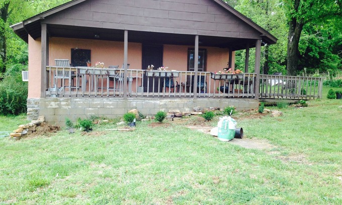 The Homestead Farmhouse was built by Alonzo and Ersie Spencer. They raised a family with six children in this home that was built during the depression using lumber taken from trees on the property. Through the years it has been modernized. I am the their granddaughter and I used it for an art studio and gallery until the summer of 2015. I totally remodeled and updated the interior. There is a large new kitchen, 2 bedrooms and a bathroom with a shower featuring handprinted tiles. There is energy efficient heating and cooling. There is a wonderful large porch on the front. A remnant of early times, the root cellar is in back of the house. The smoke house is no longer standing. There are two ponds on the property and a wooded 40 acres to explore. The Homestead has the added convenience of not being on a dirt road. For this reason it is perfect for motorcycles. The location is about half way between Jasper and Ponca. It is close to Buffalo river access and hiking trails.