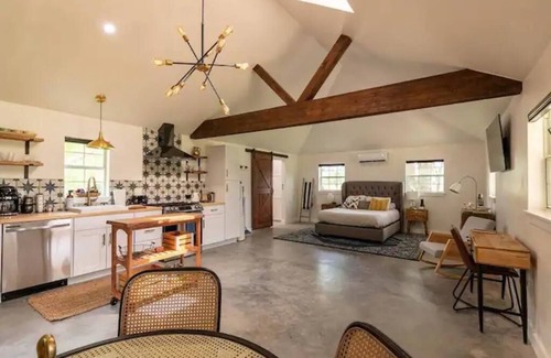 Built in 1910, @RanchoLolo is where old-world elegance meets modern style and amenities. Escape to the country in our historic farmhouse and attached horse table turned stylish studio loft. Re-designed with the sophisticated traveler in mind and maintaining all the authentic country charm yet just a stone’s throw from big-city life (40 minutes to Austin, 20 to COTA, 15 to Bastrop, 15 to Lockhart). Rancho Lolo is privately located on 6-acres in a little old country town down in Red Rock, Texas.