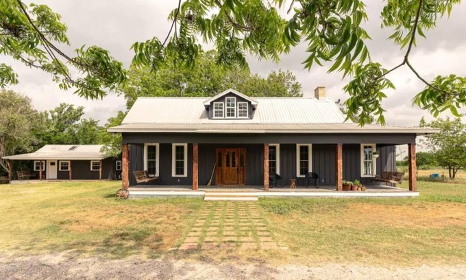 A one of a kind time-capsule sitting on a beautiful, secluded 6-acre slice of Texas history. You will find never ending pastures, sunsets, and stargazing. Oh! Can't forget about the great railroad! You’ll hear it’s charm loud and clear a few times a day. Sip your morning coffee as the sun comes up while you're rockin' on the porch swings. Rancho Lolo boasts 12 foot ceilings and sleeps eight comfortably with our main bedroom, guest-room, cozy upstairs A-frame, and our attached horse stable turned studio. The perfect experience for a family gathering or a couples/friends getaway. Great for digital nomads and work-from-home professionals seeking a fully equipped midterm rental.