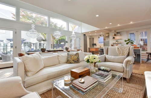 This house was on the Georgetown House Spring Home Tour. Award winning Interior Decorator did home. Heart of Georgetown, Parking , 5 minute walk to Metro. Restaurants surround you and the best Bistro is within a one minute stroll.House has a fire pit , a outdoor grill, grape arbor, Restoration Hardware furniture, fountain , outside bar and beautiful hanging lights make this outdoor space stunning. The library in in a lacquered chocolate brown with a smart tv and WIFI above the fireplace with a gorgeous bar. the great room has 4 sets of French doors a fireplace and a 70" TV complete with Netflix .Sonos system, cathedral ceilings and desk area, and a 72" sofa and two matching club chairs. A long farmers market table that sits 12 sit in the area with three beautiful chandeliers .Open concept kitchen with Bosc appliances and a stainless sub-zero. Boos butcher block table and separate ice machine. double oven and light filled. a powder room and closet completes the main floor.