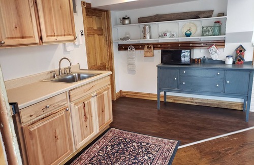 Unique suite at the Hardware Inn. 101 the Ely suite, offering one queen bed, two single beds and a private restroom. This suite also offers a full kitchen, living room, and its own private sun room. Amenities include: cable tv and wifi. This suite has access to the lobby and shared laundry facilities. All quests are provided with basic toiletries, coffee, tea, and snacks.