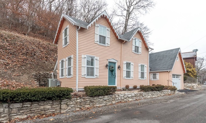 Welcome to Elsah's Finn Inn in the historic village of Elsah only 5 minutes from Grafton. Our home is nestled on a hillside with a deck off the back of the home with views to the Mississippi River. Our home is a desirable 5 minute drive to all of the Grafton bars /restaurants. The village is a quiet /historic town and very walkable with historic homes. Our home can accommodate group of 6 . All bedrooms are located on second floor. We have a spacious living room , dining room tastefully decorated. The kitchen has top of the line appliances and has everything you would need to make a meal. A coffee bar is located right off the kitchen with drip coffee maker and iced coffee maker with craft ice maker in refrigerator. Both bathrooms are full bathrooms with tub/shower in one and shower stall in other. The deck on the back of the home is private and great to take in the views of the nearby river. Restaurant to open spring 2025 right across the street from our home.