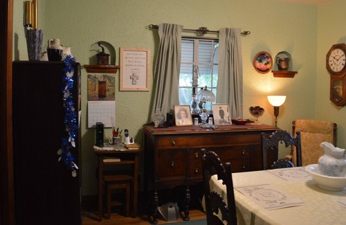 Built in 1929, the Heritage Haus brings the best of both worlds (new and vintage) together for welcoming you and yours, to the Point Place/Ottawa River/Lake Erie area of Ohio. NEW as in keyless entry, wireless internet, professionally designed and renovated kitchen and bathroom, where no expense was spared on quartz, tile, fixtures, and lighting - as well as a 52 inch new television with channel streaming capabilities. VINTAGE as in antiques and collectibles throughout, that harken back to a simpler gramophone era. Character galore with a 25 foot, open beam ceiling in the living room, original hardwood floors throughout, dining room which seats 6 guests, wrought iron viewing balcony that looks into the living room from the 2nd floor, driveway parking, and covered entry with a wooden box, that during the cooler season, serves as the spot to store sodas and other items that will be ice cold without taking up refrigerator space. This 2 bedroom and 1 bath home offers you the opportunity to be surrounded by the collected antiques and furnishings of one family that has occupied it for over 50 years continuously. It is still owned by the same family and hosts annual holiday gatherings. Now with the renovation, there has been great encouragement to have it available for others to rent and enjoy on a short term basis. We hope you will consider enjoying this space, which has proximity to downtown Toledo (10 mins), the University (15 mins), and Detroit Metro Airport (45 minutes). Morning walks along the water are our tradition as well, and we look forward to welcoming you to the Heritage Haus.