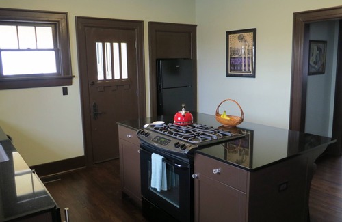 There is also complimentary high-speed internet via wi-fi, a 42” television with expanded cable service, a DVD player, and Apple TV device for general entertainment and streaming of Netflix, etc. Full-sized washer and dryer are in the basement.