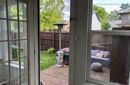 Please make use of our private backyard - on the brick patio we have outdoor couches, poofs, chairs, a dining table and twinkle lights to accompany your happy hour(s). Out front by the lavender bushes, you may see ducks walking by on their way back to the Schiller Park pond.