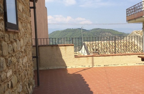 located in the historic center of Santa Severina (among the most beautiful villages in Italy). The stone house is divided over 2 floors. Large bedroom below includes 1 double bed and 1 single bed. This space is divided by a screen. Upstairs there are the kitchen, living room with fireplace, bathroom, closet and a large terrace to be used for meals.