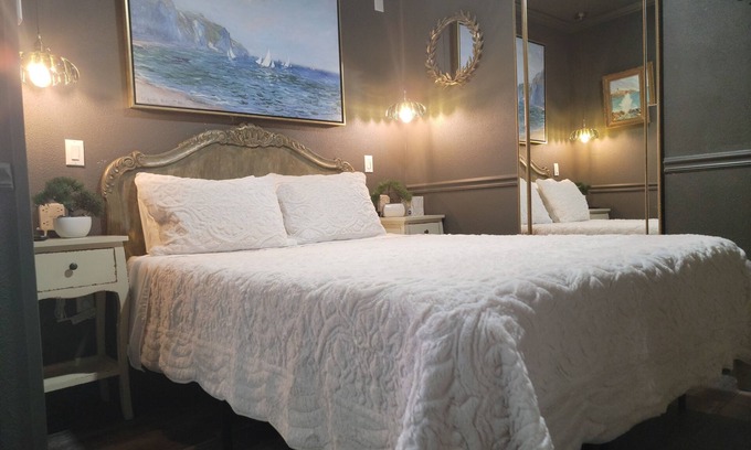 This small studio has a style all of its own. It's part of a unique Spanish Revival Historic property; the studio is one of 4 studios in a 2 story, free-standing building adjacent to the main house. Exclusively repurposed from an old doctor's office to serve as short term rentals. Specifically repurposed with couples' comfort in mind, to offer a one-of-a-kind experience...