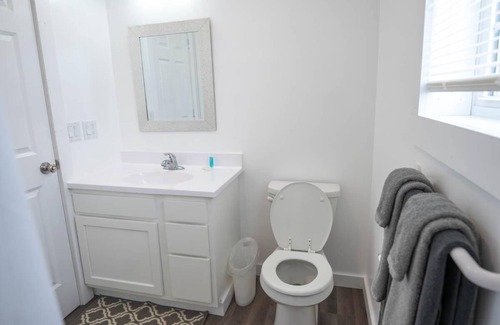 The kitchen has plenty of room for cooking and is fully-equipped with a sink, stove, oven refrigerator, microwave, coffee maker and toaster. Dishes, pots and pans, cutlery, and utensils are also provided. Towels, washcloths, soap, and shampoo are included in your stay.