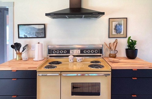 Spectacular views continue from the large kitchen where you can gather around the huge central island for conversation and meal preparation. Brand new appliances throughout, except for "Colonel Mustard," the vintage Sears range with the adorable side oven to bake a batch of brownies should you choose. Make a bowl of popcorn with our stovetop popcorn popper or get familiar with "Miss Scarlet," the ice cream maker. Please note there is NO garbage disposal.