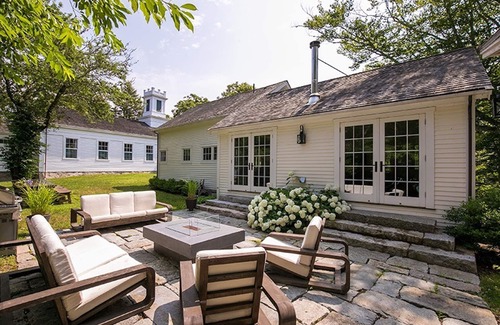 The Parsonage is a 2-bedroom, 2-bathroom house with full kitchen. French doors open out from the living & dining areas onto a rustic granite patio, complete with outdoor lounge seating, barbeque grill, and fire pit.