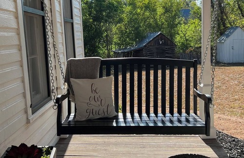 The Ratliff Retreat provides modern amenities for your comfort and convenience, while retaining the original charm of our historic 1870s Texas Hill Country home. This guest room features a king-size bed appointed with luxury linens, an antique fireplace (decorative only), and a private bath with locally made soaps and lotions. The Ratliff also has a screened in back porch to enjoy the Texas Hill Country evenings in a peaceful setting while winding down after a day of sight seeing or shopping. Relax in vintage farmhouse-style comfort just one block from historic downtown Llano, TX. Whatever your pleasure, you are sure to find plenty of activities and attractions nearby. Start your day in your own kitchenette with a small fridge and microwave, stocked with a light un-hosted breakfast. The grounds offer a beautiful lighted courtyard complete with a fire pit (guest to provide all fire making materials) and BBQ grill you can relax under the stars and the quiet of the Hill Country!