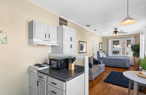 - Comfortable Accommodations: The 500 square foot studio features a cozy queen bed and sofa, accommodating up to three guests, perfect for bridal parties or family members needing a comfortable stay.