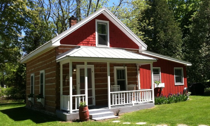 This historic log cabin (Doc's Hideaway) sits at the tip of the Door County peninsula in beautiful Gills Rock, surrounded by lush woods on one side and the picturesque Bay and bluffs on the other. This mid-1800’s cabin has been lovingly renovated (admire the character of the original hand scraped wood walls and ceiling beams) with all the amenities and comforts of home. New in 2022: extra fast Wifi via Starlink (up to 105 mbps) and a high efficiency ductless AC and heating system.