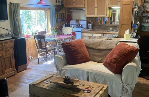 Located on a fairly quiet dirt road which is accessible with 2WD cars in the summer and 4WD OR AWD in the winter only. The cabin is approximately 30 feet away from the owner's studio.