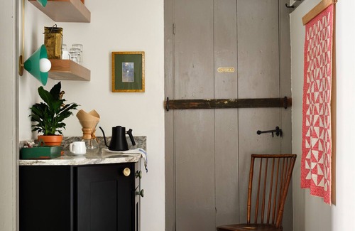 The two bedrooms each feature a queen bed, private full bathroom, as well as plenty of storage. Furniture throughout is a mix of antiques and new pieces ranging from early 19th century to today. Bedroom 1 has a cozy seating area with a lounge chair and reading lamp. Bedroom 2 has a desk setup, ideal as a writer's retreat or for you to work on vacation. (The WiFi is impressively fast for rural Maine.) Beds in both rooms are flanked with Blueprint NYC sconces and antique side tables. Bedding has been selected to ensure a restorative and luxurious night’s sleep. Plush mattresses topped with crisp percale sheets and a warm blankets or quilts offer guests a much needed rest so they can dream about what adventures they will have the next day. When you wake, you can freshen up in the classic b On top of these historic bones, we created a unique, luxurious rental space. Our biggest source of inspiration for the design of this project is the Maine concept of “Upta Camp.” This aesthetic pays homage to the multi-generational family retreats of the people that have come to the lake for a simplified way of life and an opportunity to reconnect with oneself and their friends and family. This space is unlike any other short-term rental in the Mount Washington Valley for its focus on high design, sleep experience, luxury products, as well as its unique historic setting. This as a four-season retreat, the perfect place for guests to relax after a long day of hiking, hunting, fishing, skiing, kayaking, floating the river, or enjoying the area’s many scenic drives