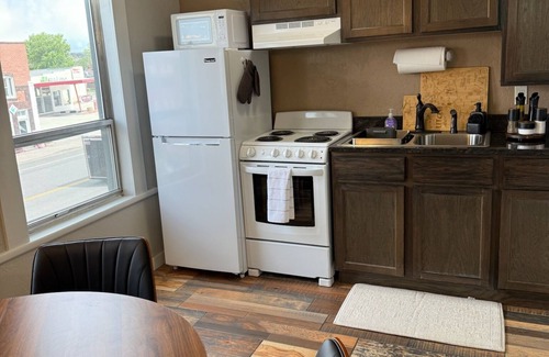 Welcome to your home away from home in the heart of Panguitch's lively Main Street. Located in a beautifully restored 1895 building above the town's cozy cafe, our spacious 2-bedroom, 1-bathroom apartment blends historic character and modern comfort.