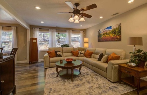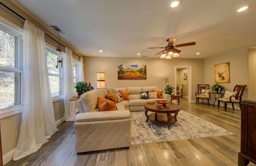 Enjoy the splendor of a by-gone era while staying in this Historic home. Once a mercantile and gas station, now a comfy mountain retreat. Indulge in the comfort and tranquility of this newly updated, modern home with ALL of the amenities. Beautifully decorated and featuring two levels with 3600 sq. feet of living space. Lots of room for family & fun. Kids/Teens will enjoy the separate media room "Cottage/Treehouse" nestled in the trees.