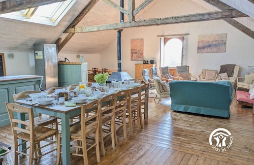 The Rongère Mill offers a stay with family or friends thanks to its 5 bedrooms and 4 bathrooms (2 private) / 1 shower room (private). Ideally suited for 5 couples (plus children), the mill can accommodate up to 14 people.