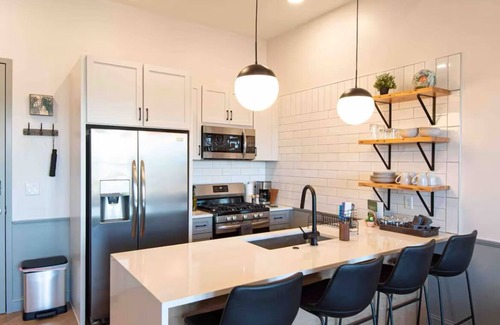 You’ll have the whole place to yourselves! There is also a shared rooftop patio on the same floor overlooking Morris that guests are welcome to use! The building has a cool pedestrian walkway that runs along the lower level connecting Morris Avenue and 1st Avenue N. There are restaurants, art galleries and boutique shopping in the lower level of the building! There is both metered and unmetered street parking. The metered spots are free on nights and weekends. There are also two lots behind the building. One is a lot with a gated arm for $4/day and another is an open lot for $10/ day.