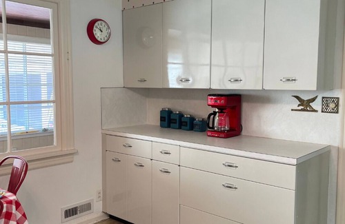 Close to downtown, Historic Mt. Vernon House is a perfect get away for those who want to experience a throw back to the mid-century. Enjoy the amenities of this stately home including: two large bedrooms furnished with queen beds and attached bathrooms, a frilly twin bedroom, a retro kitchen, billiard room/library, an indoor patio, a large living space, and a private backyard. Historic Mt. Vernon House is nestled on the end of a quiet street, and has a private drive around the block.