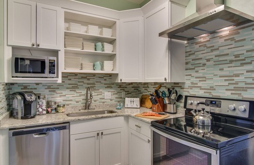 6 Total Beds: 2 custom made King beds & 3 custom made Queen beds, sleeping 10 people. An additional queen sleeper sofa bed is provided for 2 extra people to sleep 12 guests total in first class comfort. There are 3 full bathrooms--dual shower wall and rain shower heads in 2 of the baths accompanied with body sprayers, and a jacuzzi tub complimenting an additional master bath. We have multiple hot water tanks to never run out of hot water and provide great water pressure throughout the property. Top quality linens, towels, and bathroom essentials are provided along with access to 2 sets of washer and dryers for large groups. The cozy bright kitchen with high end appliances will suffice for all your party and vacation needs. Superfast Wifi is included and we are pet friendly. This is a soundproof multifamily home with a separate unit for long term tenant. Your home space is completely private with your own driveway and ample parking, private entry, private front fenced in yard, and private large furnished back deck with private grill. No major stairs and the floor plan is all on one level--a rarity for a home this big--perfect for families or Senior groups!