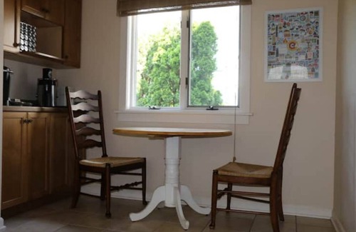 This vacation rental combines classic charm with modern amenities like a washer-dryer, Wi-Fi, 50” smart TV, central air-conditioning & heat, and a large kitchen with breakfast table is stocked with everything you need to make a marvelous meal at home. Dining room has dining table that seats six. Restaurants within a few blocks include Thai, Mexican, deep dish pizza and a cider brewery.