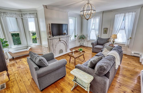 Relax and unwind at The Quay House, a Historic property with your friends and family. Gather together throughout the 3-story home then enjoy the spacious patio sitting around the wrought iron table or playing in the yard all while surrounded by gardens & evergreens.
