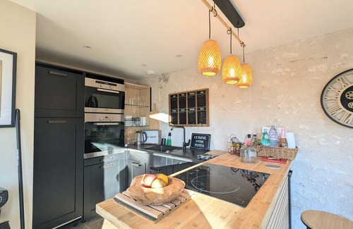 Near the Beauval ZooParc, Touraine, and the Brenne Regional Natural Park. The living area features a kitchen, lounge, and dining room. The sofa bed can accommodate two additional guests upon request.