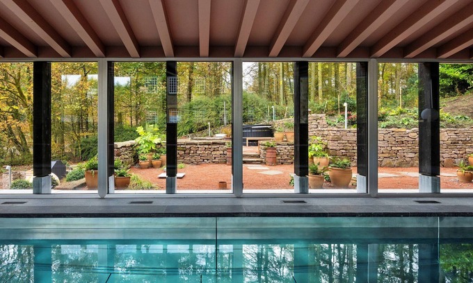 Nestled in the heart of the Peak District, this stunning historic property offers a unique and luxurious escape for up to 30 guests. Set in the idyllic village of Wildboarclough, the home blends rich heritage with modern design, featuring 10 en suite super-king bedrooms and a charming attic with 10 curtained alcoves. Ideal for large groups, corporate retreats, or family celebrations, it boasts spacious living areas, wood-fired hot tubs, an indoor pool, and a yoga studio. The property is perfect for those seeking both comfort and adventure, with outdoor kitchens, premium pizza ovens, and a South African-style Braai to elevate your alfresco dining experience. The property is surrounded by the picturesque River Dane, which flows around three sides, creating a serene atmosphere as it meanders through the landscape. Guests can gather around the grand, reclaimed stone dining table set amidst a flowering orchard, enjoying meals and making memories. Designed for relaxation and togetherness, the property allows guests to immerse themselves in nature, with open views and outdoor spaces to explore. Whether you're relaxing by the river or indulging in the luxury amenities, there's something for everyone at this tranquil retreat. Situated in a scenic, tranquil valley, this retreat offers ample opportunities to explore the natural beauty of the Peak District, with its rugged dales and dense forests. The village of Wildboarclough is steeped in history, and the area is known for its folklore and wildlife.
