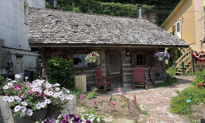 Make some memories at this unique and family-friendly log cabin located "in town". This cabin was re-located to it's current location, in 1987, from Wexford, IA. Built in 1842, by John Downs. Downs' stepdaughter Sadie inherited the cabin and lived there until she was 92. We now call it Aunt Sadie's Cabin in her memory. It now has modern conveniences like running water, electricity, and an indoor bathroom, with a jacuzzi tub/shower. Also, enjoy the real wood fireplace during the colder months.