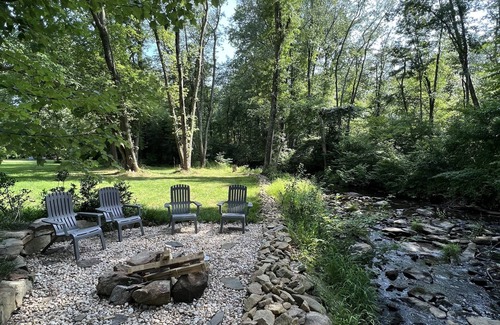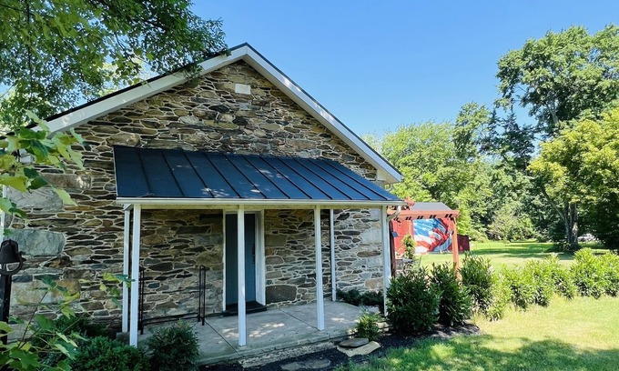 Quaint, historic schoolhouse on three acres, and firepit by a bold stream, and with a nicely furnished pergola deck including gas grill. All this on a road with several wineries...one close enough to be walkable (with care)! So much history and recreation in the immediate area, you will be overwhelmed with all there is to do in the time you will visit.