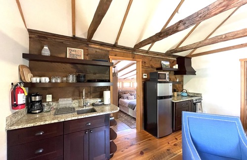 This one bedroom, one bath structure is a combination of adobe brick and stick frame construction. The outside of the building has been left primarily untouched to maintain its historical integrity but has been updated inside to accommodate the modern traveler.