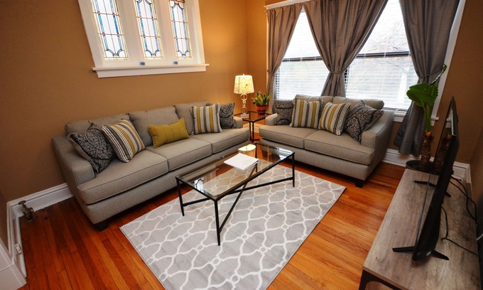 The Southwest Gardens Apartment is a large one-bedroom, one-bathroom home with a bonus room located just one-block west from the Missouri Botanical Gardens, three-blocks north of the historic Tower Grove Park and less than a mile from the Hill neighborhood. This apartment comes with everything you would need for daily life and comfort. I have laundry machines located in the basement, WiFi and a fenced back yard for your enjoyment. This apartment can sleep up to four guests: one king-sized bed with a memory foam mattress, one twin-sized daybed accompanied by a twin trundle-bed and linens for all. The building is located in the heart of the city, making it a perfect location for getting out and about in St. Louis.