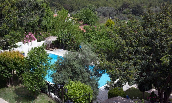 The stone villa is located on a sprawling acre-large very well kept property with a large pool. The house is lovingly furnished with custom-made furniture, vintage items and custom-made linens and soft towels. The house has a large terrace and balcony with views over the Mediterranean valley of Manavgat. Two bedrooms and one bathroom are on the upper floor, the kitchen and living room with fireplace is on the ground floor. Free wifi available.