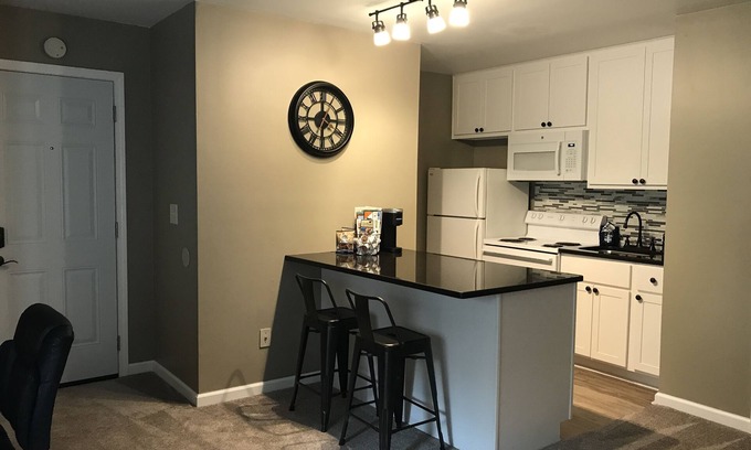 This cozy apartment enters through a shared hallway and has been recently updated from floor to ceiling with new cabinetry and renovated kitchen and bathroom. Kitchen w/full refrigerator, stove and microwave. Queen size bed with large closet in bedroom. Full bath with shower unit. Washer and dryer located right outside of unit. Guests can visit the Ohio Light Opera, The College of Wooster, Smucker's in nearby Orrville, great walking and bike trails, golfing at Hawk's Nest ( 3 miles away) and Amish Country in nearby Holmes County. This is also a great place for business professionals or parents of College of Wooster or ATI students.