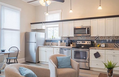 Step into a blend of history and modern elegance at the Historic Studio Apartment near Marietta Square. Located just a 5-10 minute walk from downtown Marietta, this charming studio apartment provides a unique lodging experience for up to two guests.