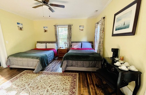 Step back in time with us and enjoy a relaxed stay in one of four historic suites in the Magnolia Dreams Inn. Spend your days relaxing on the front porch in a rocking chair watching the train go by and sampling muscadine wine from local wineries. Six minutes door-to-door to the Duplin winery, the largest muscadine winery in the south. And only a 45 minute drive to Wilmington and Wrightsville or Topsail beaches.(Continental breakfast available upon request for additional fee.)