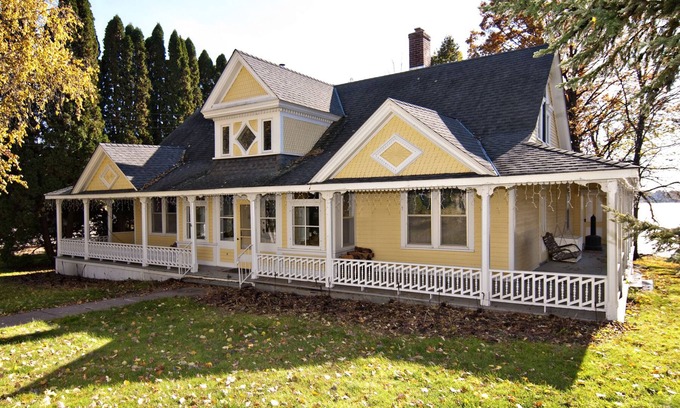 Vacation in this never before available, historic home on Quiet South Lindstrom Lake. Built in 1898, this home is on the National Historic Record of Homes, but features all the amenities of a new home including a master suite with gas fireplace, an eat-in kitchen with granite countertops and an exercise room with treadmill, recumbent bike, television and weight machine. Wrap around porches and a huge deck cantilevered over the hill above the lake make for great views and relaxation rain or shine. With over 3800 square feet of living space, even the largest family or group can find privacy. PLEASE CLICK ON RATES AND AVAILABILITY - VIEW ALL RENTAL RATES - FOR SEASONAL PRICING.