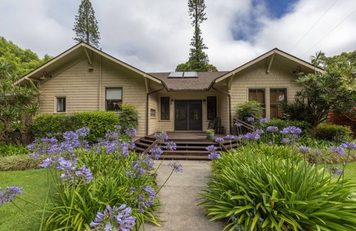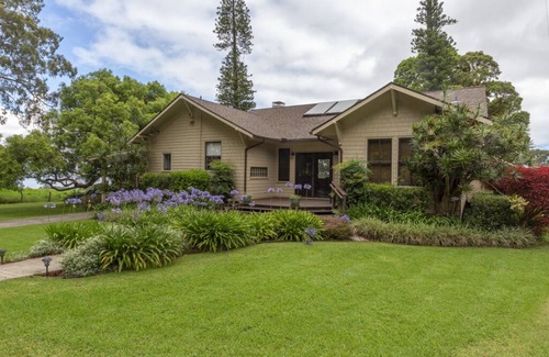Uhane Olinda is a beautifully renovated 1908 Hawaiian ranch home in restful and restorative Upcountry Maui. Located two miles above the paniolo (cowboy) town of Makawao and away from the tourist areas, the home offers the ambience of an expansive lawn, large trees and a magnificent ocean view. Verdant ranch land and Anuhea Flower Farm border the property.