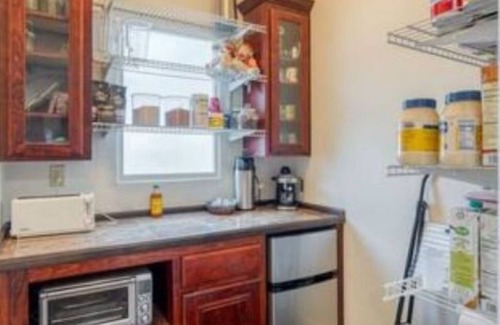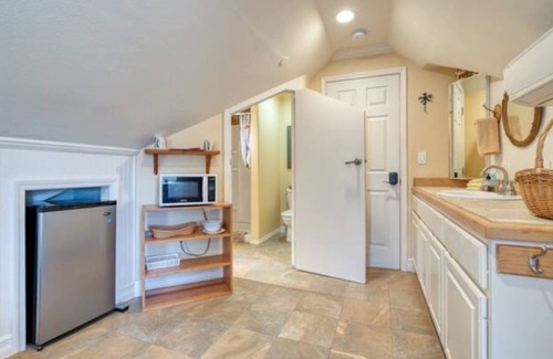 Each of the four interior bedroom suites includes a private bathroom with shower, small fridge, microwave & TV, with access to the well-stocked main kitchen, laundry room, living room, dining room, patios, and gardens. Suite 5 (detached, in the garden) is rentable too, but is not included in this particular ad. Each suite has its own independently controlled heating & AC for personalized comfort. Wifi is 2 gigs fiber.