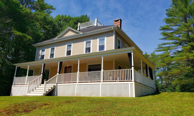 Gather the family and come spend your vacation at Holiday Hill, the beautifully restored Victorian home on Mirror Lake. Pride of ownership and attention to detail shows in every corner of this charming property that offers a whopping 6 bedrooms and 2 & 1/2 baths! There is central A/C in the house with the exception of one first floor bedroom that has a window A/C unit. There are 2 cable TVs (one in each of the living rooms) as well as wi-fi. The updated kitchen is bright and cheery and offers a large island with seating for the family to gather while the chefs of the group prepare your meals. Remember, there’s also a gas grill for those quick burgers and dogs at lunch time. Imagine spending your evenings reconnecting with your loved ones on the huge covered front porch with drop-down screens! How about your morning coffee out on the open deck facing the rolling back lawn which is perfect for your yard games! Speaking of yard games – you can challenge your housemates to a rousing game of Corn Hole in the evening then treat the group to an ice cream in the historic Town of Wolfeboro (the oldest summer resort in America!) – just a 10-minute drive away. Ready to make a splash? It's just a 2-minute walk (500 feet) down the path from the house to your own private shorefront on Mirror Lake (the path crosses a right of way driveway/road that accesses other homes on the lake). At the shore-front you'll find a dock that will accommodate your boat up to 20 feet in length and sand-bottomed frontage from which to take a dip to cool off on a hot summers day. There is a public boat launch on Lake Winnipesaukee just a 2 minute drive away as well. Mirror Lake is 377 acres in size and great for kayaking or canoeing – ask us about local companies that rent small boats if you don’t have one to bring with you. At the end of the day there are 6 bedrooms to choose from for a great night’s sleep to refresh for your next fun-filled day. You will not want for things to do – The Lakes Region offers great golf and mini golf courses; Funspot – the world’s largest arcade; Zip-lining at Gunstock Mountain; Monkey Trunks Ropes Course; hiking; horseback riding; cruises on Lake Winnipesaukee and amazing restaurants ranging from waterfront spots featuring some great local musicians to high end formal dining and – believe it or not – we still have a drive-in movie theatre at Weirs Beach! What are you waiting for? Max: 8 cars.