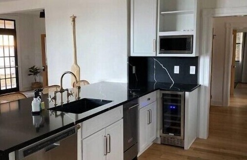 * Kitchen - fully stocked with ice maker, wine cooler, bar setting, and smart TV