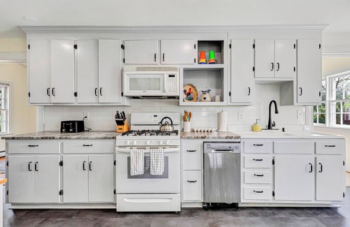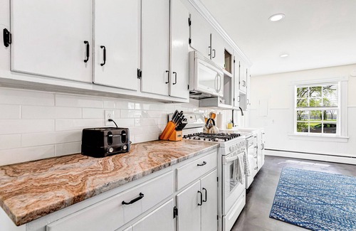The Farmhouse features two queen beds and one full bed, all with fresh, high-quality bedding and linens provided for a restful night’s sleep. We further provide an incredibly comfortable foam mattress roll away twin bed. The first-floor bathroom includes a classic shower/tub combo, with a new floor and, of course, sparkling clean from top to bottom. Upstairs, the brand-new second full bathroom features a modern walk-in shower, offering convenience and comfort for guests.
